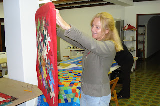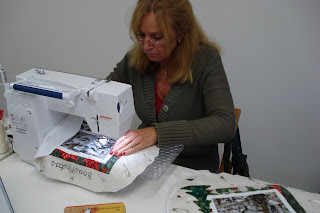 Ursula is making placemats for Christmas, these are her own design. They will be quilted with silver metalic thread....