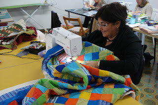 Arabela took a small break from patchwork to make a very prety dress for baby Alexia, using the new "Cut & Sew" she got last week. Ursula was a great help!