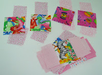 Lynda made a good start with her new project, I hope it's not needed for a Christmas present. She loves all the bright colours and will make a Pineapple Blossom quilt. She cut out lots of 2" strips so that she could mix them up, the pineapple-y bits will be pale blue, you can see the fabric, it's the 3 1/2" square in the middle at the top of the picture.