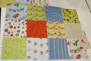 | New Sue pieced together this lovely set of Charm Squares (pre-cut 5" squares) She's making a baby bag... for all the baby paraphernalia it's not for putting baby in... he he |
