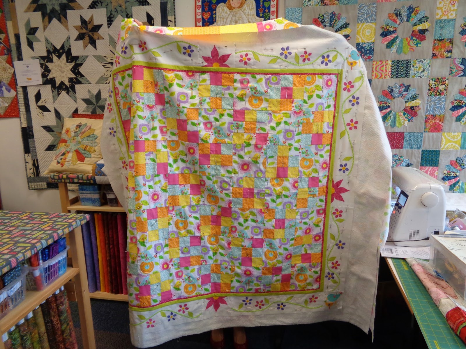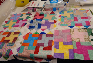 | PM Pam also sandwiched this 3D quilt. The pattern was in Love Patchwork And Quilting magazine recently. It's Pam's retreat quilt... this one will be machine quilted with a YLI variegated thread. |