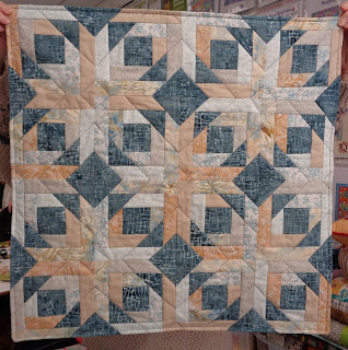| On Sunday afternoon I quilted this cushion top... Batik blocks made for the Pineapple Blossom workshop |