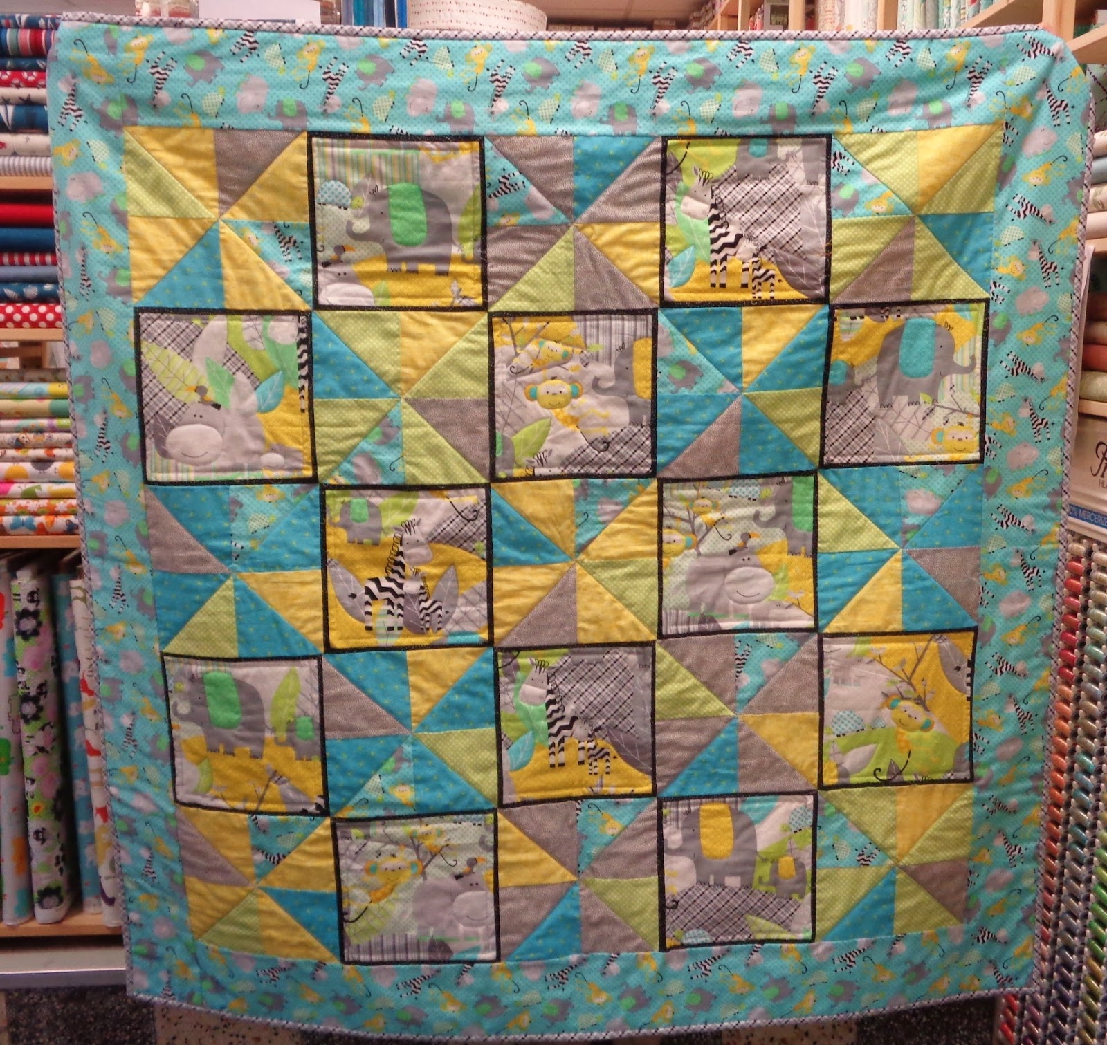 | Fanfare toot toot tooting time.... For Princess Jackie's fabulous and finished gifting quilt... Very cute fabric and perfectly neutral for any colour of baby neither Pink-etty-pink nor Blue-ishy Blue! |