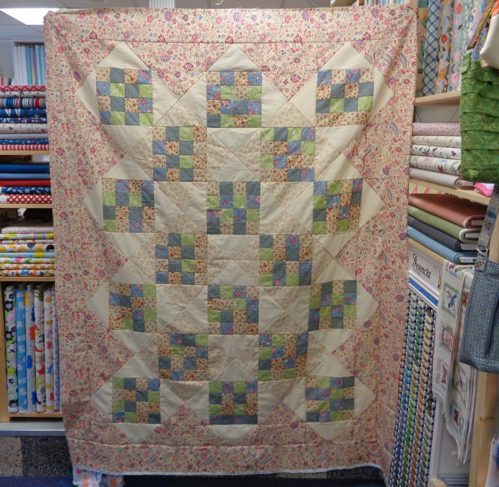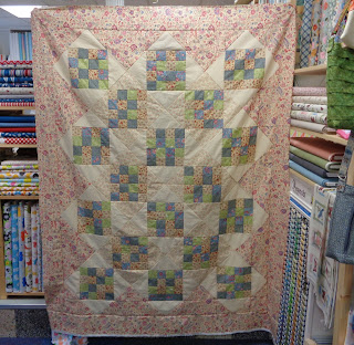 | New Sue's quilt was one of the sandwiches booked for Sandwich Saturday yesterday, the only one that I took a picture of... I had a busy shopkeeper day! fabulous fun. I love playing shop!!! |