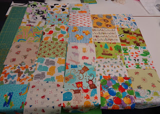 | Farmer Lynda decided to start making a kiddy play mat type of quilt using one of our very popular packs of pre-cut 6" squares... |