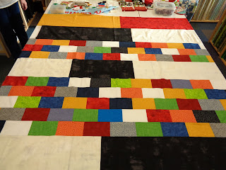 Just Edna is making this lovely bright quilt for gifting... she's enjoying all the big, easy pieces after her double wedding ring marathon