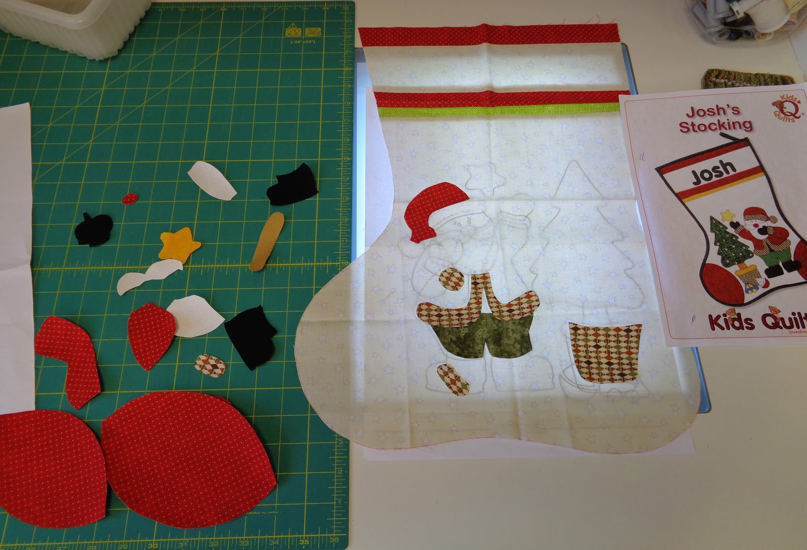 Fiona Too had all the 'bits' prepared and cut out at home so that she could use my light box to help with the placement of all the little details, and there are a lot! Fiona's made this lovely Santa Stocking before, a few times... babies keep arriving!!