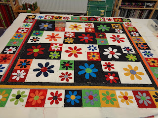 Norma's number two sandwich was all ready on Saturday and today, Monday, she stitched the binding in place as she's been quilting at home.
