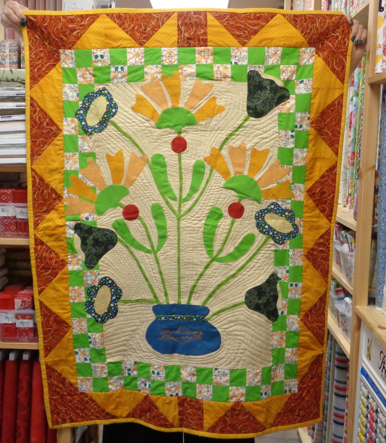 | Princess Jackie finished her fabulous and quirky Under The Sea quilt... beautiful bright colours, expertly appliqued. It's a Fishy Fishy Fishy quilt pattern from The Red Boot Quilt Company though Jackie omitted some of the original designs to keep control of the size. PMS... gotta love a bit of Pleasing My Self!! |