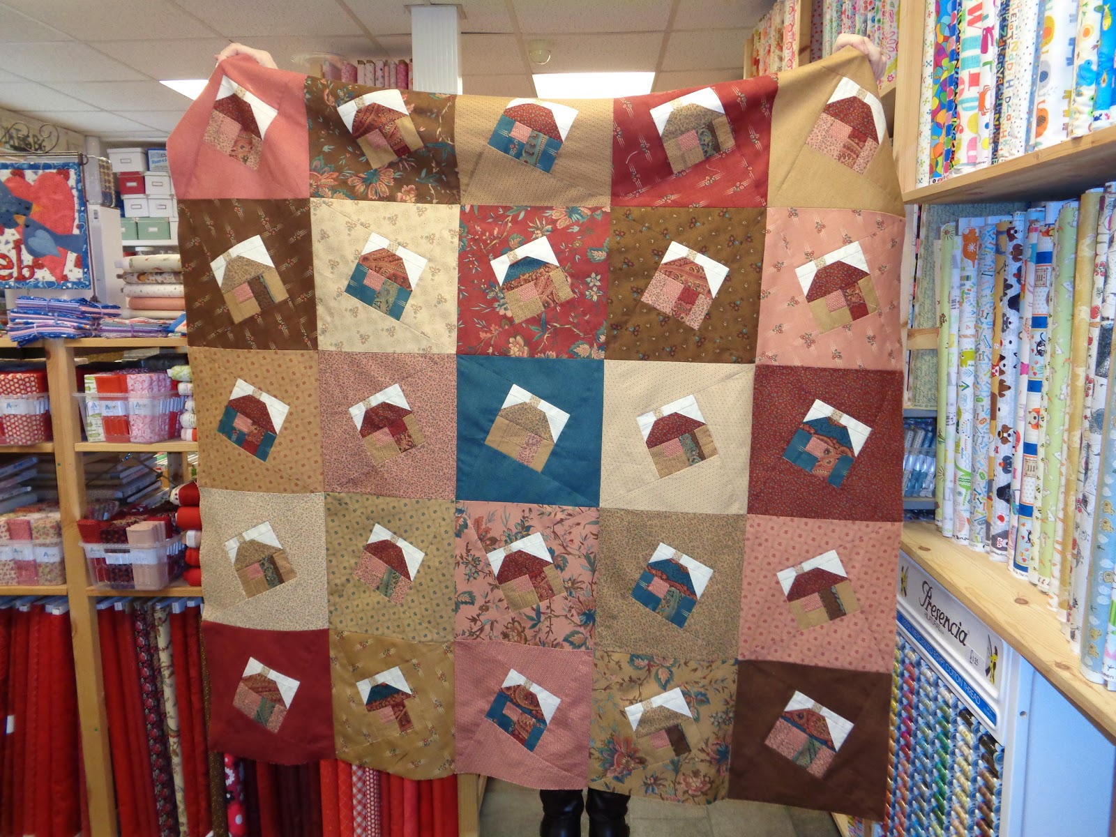 | Lorna made this housey block quilt using a pattern from a magazine and a Layer Cake from Moda. Borders and backing have been chosen too. |