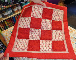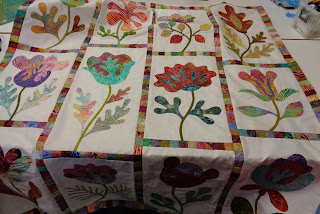 | Monday Sheila had already made two tops and then made two quilt sandwiches before she started working on this bag... this woman must have jet fuel for breakfast... we can't keep up! |