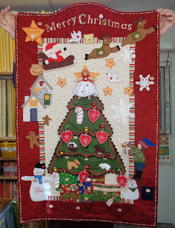 I can't even begin to tell you how happy Carol is with this extremely festive project.  She purchased the pattern during our Pilgrimage to the Festival Of Quilts in August, from Dandelion Designs, It's been fun choosing and gathering all the fabrics and felt and little things she needed and it's been even fun to make... that's what Carol says...