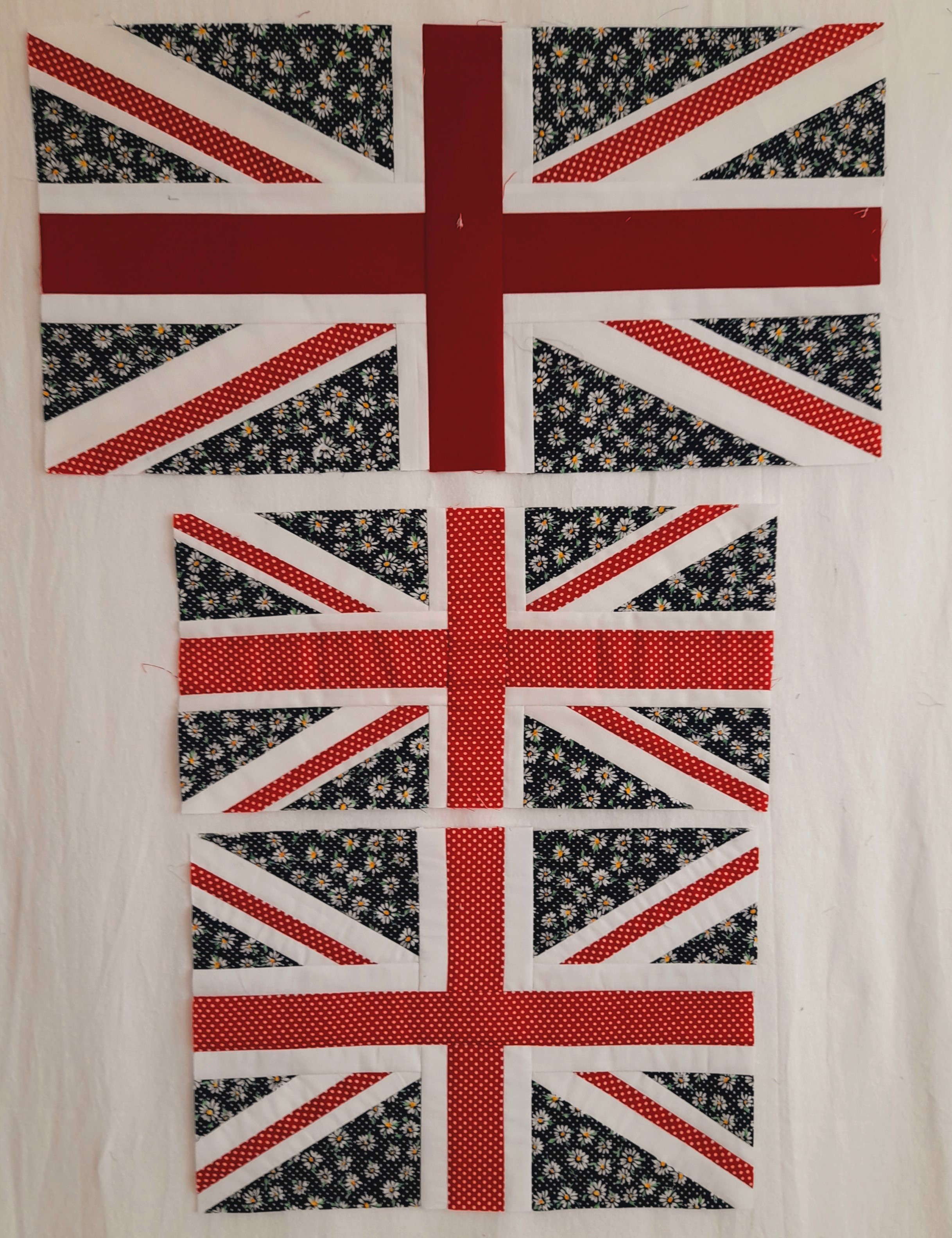 I also purchased 1 PDF pattern from this link, that's my bottom block. I am much happier with the dimensions of this one But none of the diagonals line up like a real Union Jack, which is fine, but not what I am after.